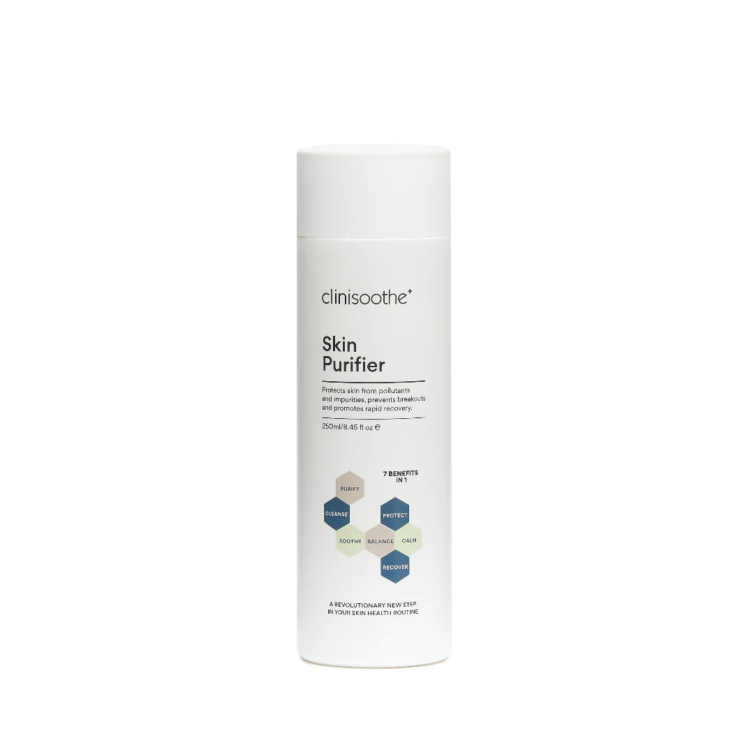 Clinisoothe+ Skin Purifier från Clinical Health Technologies skyddar och renar huden från miljöföroreningar som orsakar åldrande, utbrott och irritation. Formulan använder avancerad hypoklorteknik som lindrar och lugnar huden i ansiktet och på kroppen, balanserar rodnad och främjar snabb hudåterhämtning med synliga resultat. Clinisoothe+ är medvetna om att hudproblem är unika, och för vissa människor påverkar de inte bara ansiktet. Därför har deras skonsamma formula ett hudneutralt pH-värde och kan användas överallt i ansiktet eller på kroppen där utbrott, irritation och rodnad förekommer. Hypokloret har ett unikt oxiderande verkningssätt som rengör och ger ett renande antimikrobiellt skydd, som samtidigt är skonsam mot huden: skadar, irriterar eller försvagar inte huden. Clinisoothe+ har ett hudneutralt pH, är giftfri och innehåller ingen alkohol. Den är kliniskt framtagen och dermatologiskt testad för att garantera dess säkerhet även på den känsligaste huden.